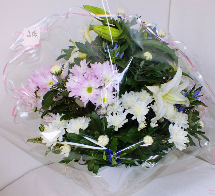 本日お供えのアレンジメントおまかせを2つお届けさせていただきました。