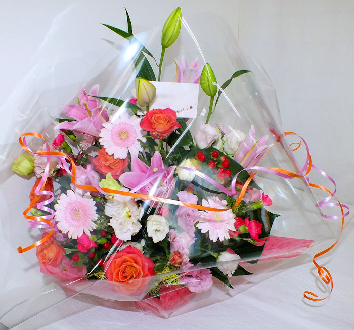 大工町へお届けいたしました誕生日御祝アレンジメントおまかせです♥