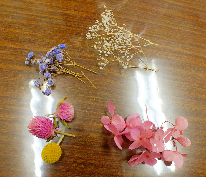 ドライフラワーとプリザーブドフラワーを使います。