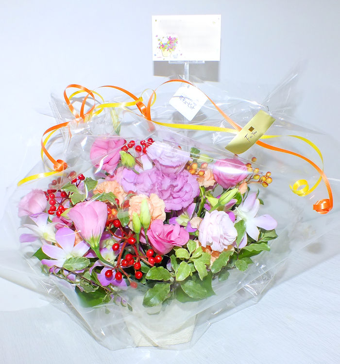 水戸芸術館へお届けいたしました御祝ワンサイドアレンジメントNo.511600です♥