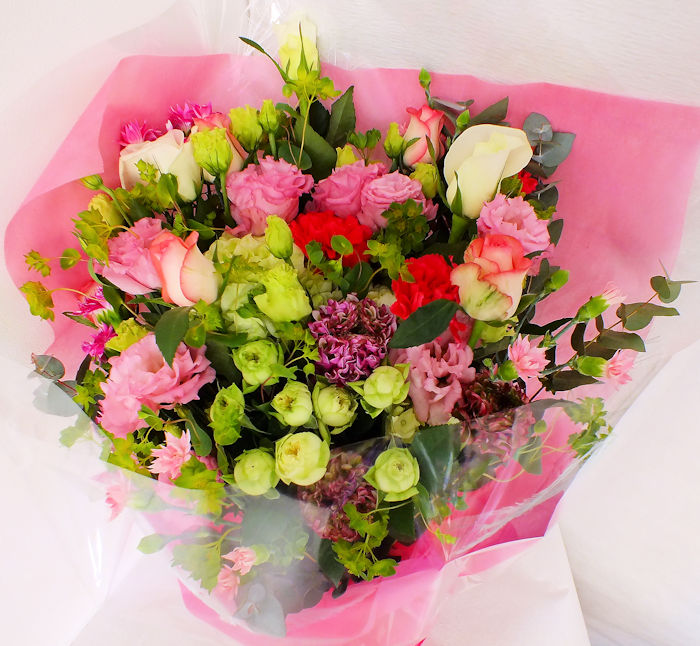 ピンクとライトグリーンが春らしいボリューム満点の花束です♥