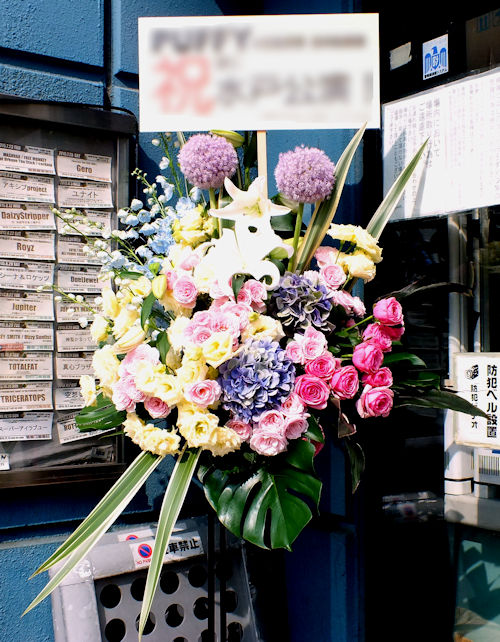 本日お隣のライトハウスさんへお届けの御祝スタンド花1段です。
