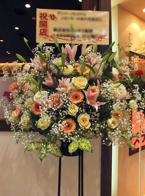 本日お届けいたしましたのは開店祝いのスタンド花1段です。