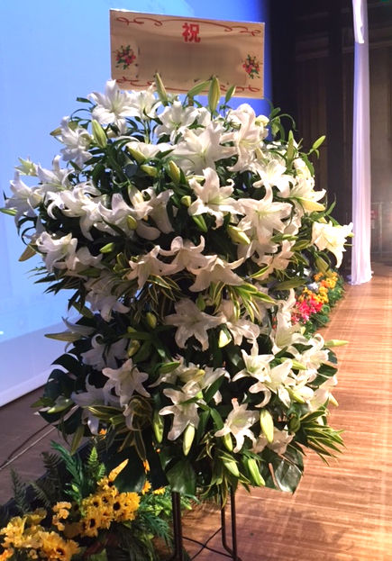 本日のお届けは誕生日のお祝いなのですが、真っ白なカサブランカだけでとのご注文のスタンド花2段です。