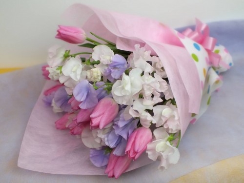 今年もチューリップ&スイートピーの花束が大人気です♥ 大きさの比較は↑こんなかんじ。 M : チューリップ7本 & スイートピー7本 ¥2,980   […]