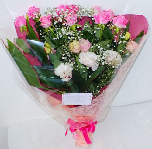 宮町へお届けいたしました誕生日御祝アレンジメントおまかせです♥ 6本の赤バラとカスミソウ、オンシジュームをいれてとのご希望でおつくりいたしました。 ご注文ありがとうございました♥
